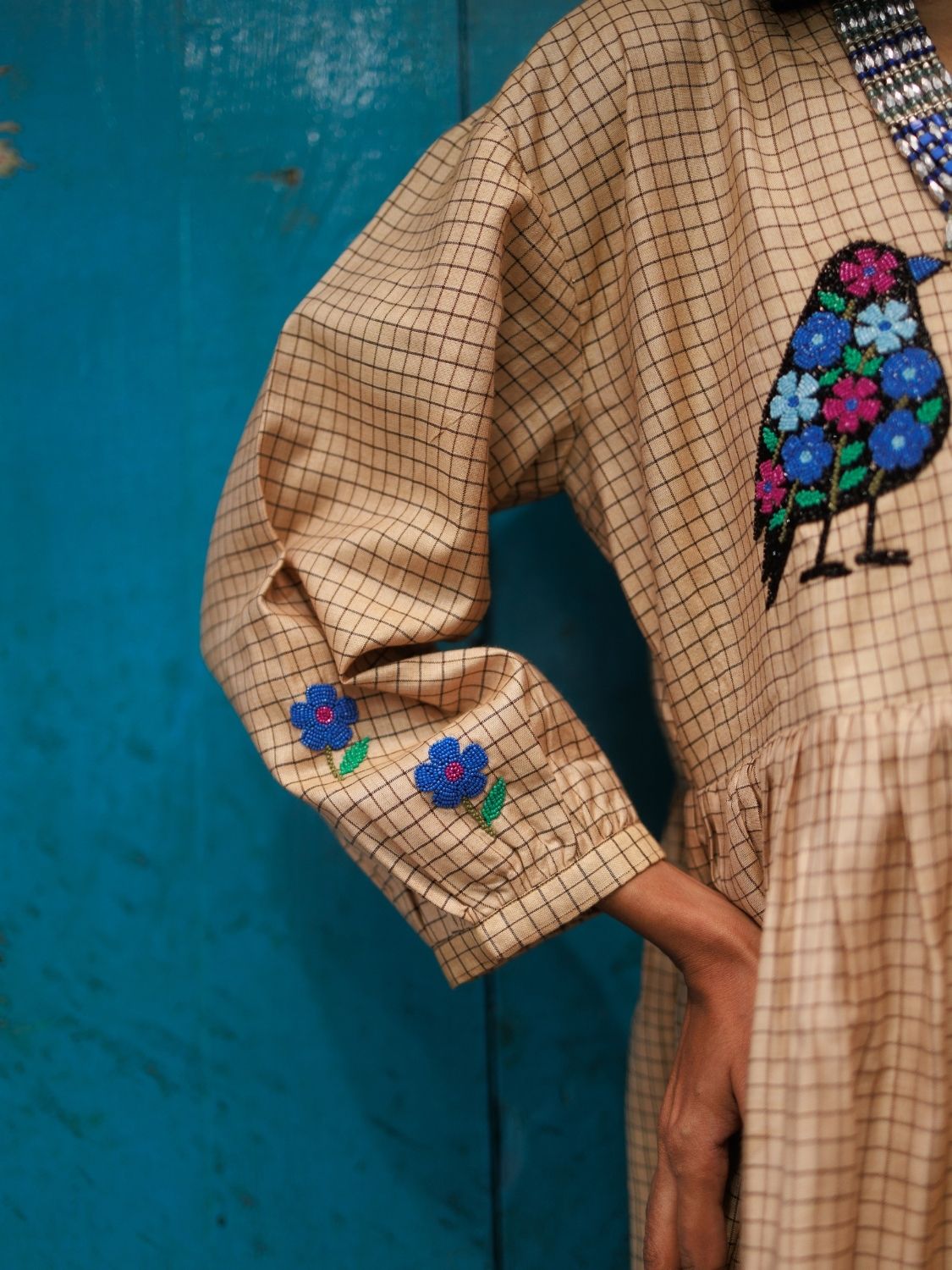 This dress is lovingly hand-embroidered and deserves gentle care. We strongly recommend dry cleaning only, and please avoid washing.